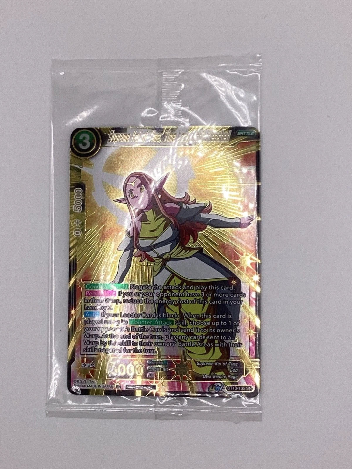 Supreme Kai of Time emerges as a formidable force in this Top 16 sealed product from the Time Labyrinth Unleashed set. This competitive-grade collection delivers premium Dragon Ball TCG cards with authentic tournament-level potential. Each sealed pack maintains factory integrity, ensuring genuine pulls and collectible value. Perfect for serious players seeking high-impact cards and competitive deck construction, or collectors pursuing rare character variants. The Supreme Kai of Time archetype offers strategic depth with powerful effects and synergies that define the current meta. Secure this sealed product to unlock tournament-ready cards and exclusive pulls from one of Dragon Ball's most sought-after releases.
